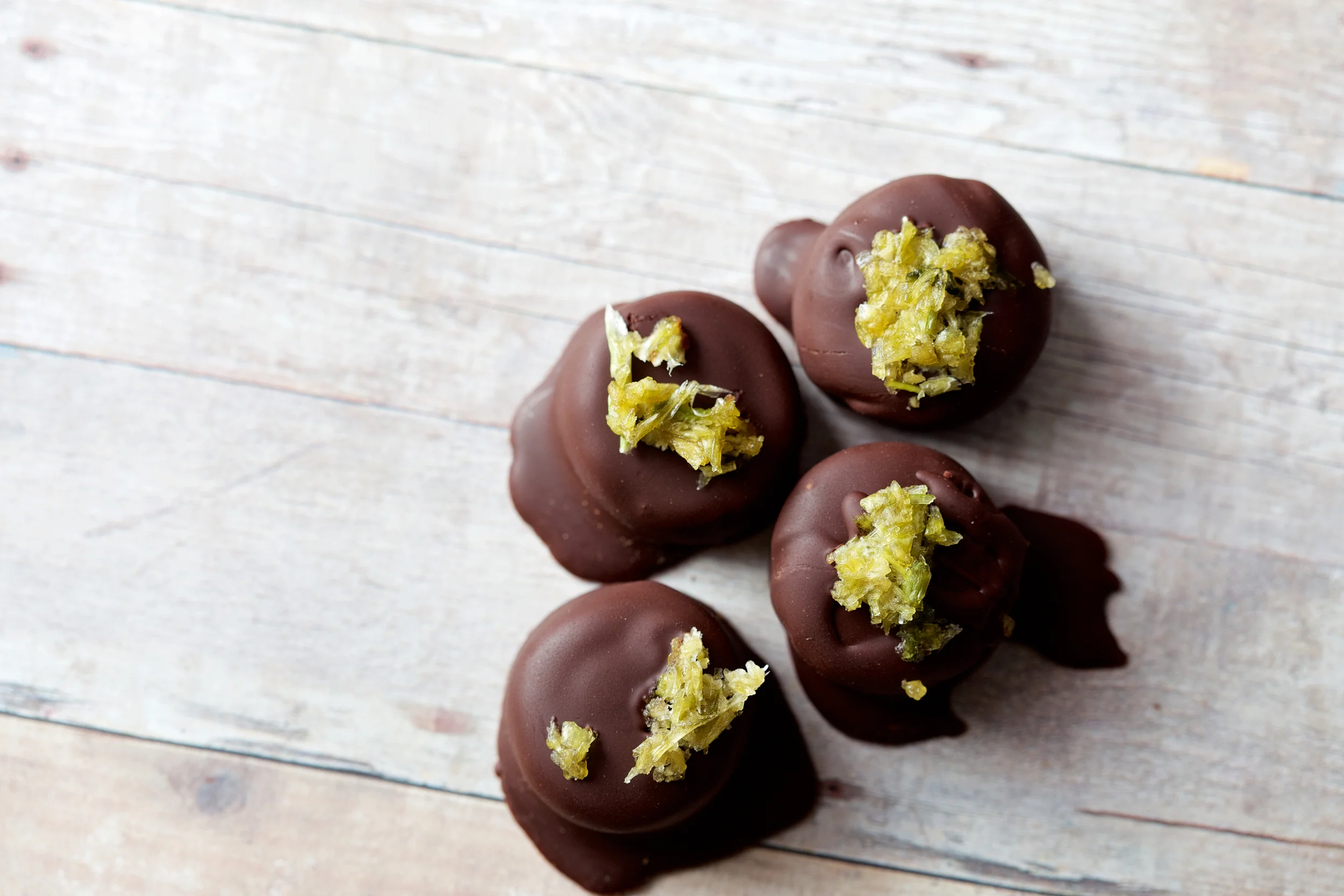 Old Bay Pralines with salted celery garnish