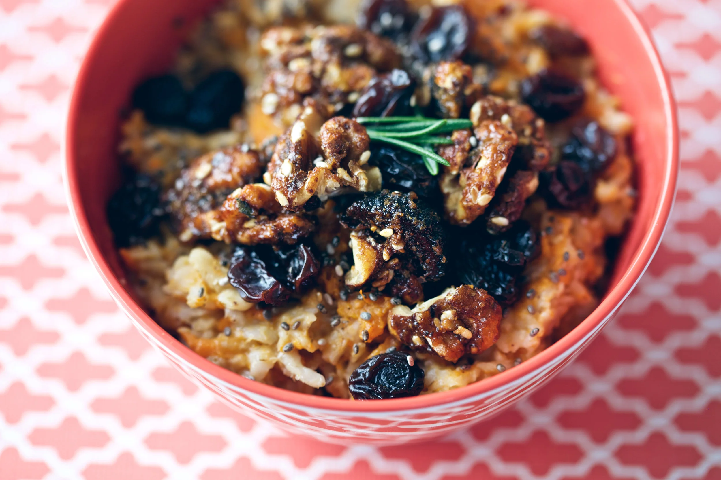 So exactly what is a 'Harvest Oatmeal'? Well to make it very simple (since the full recipe is listed below): old fashioned oatmeal mixed with a mashed sweet potato and assortment of spices, then topped with rosemary brown sugar walnuts by Kinderhook Snacks. Now if this doesn't scream autumn and Thanksgiving, I don't know what else does. If you are a lover of breakfast, oatmeal, sweet potatoes, fall or good food (lol) this is a MUST TRY.